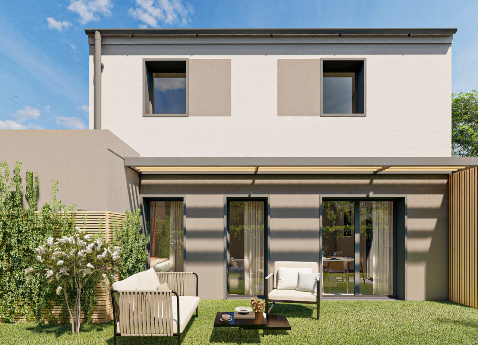 Moderne et intimiste, chaque logement bénéficie d’un jardin privatif ainsi